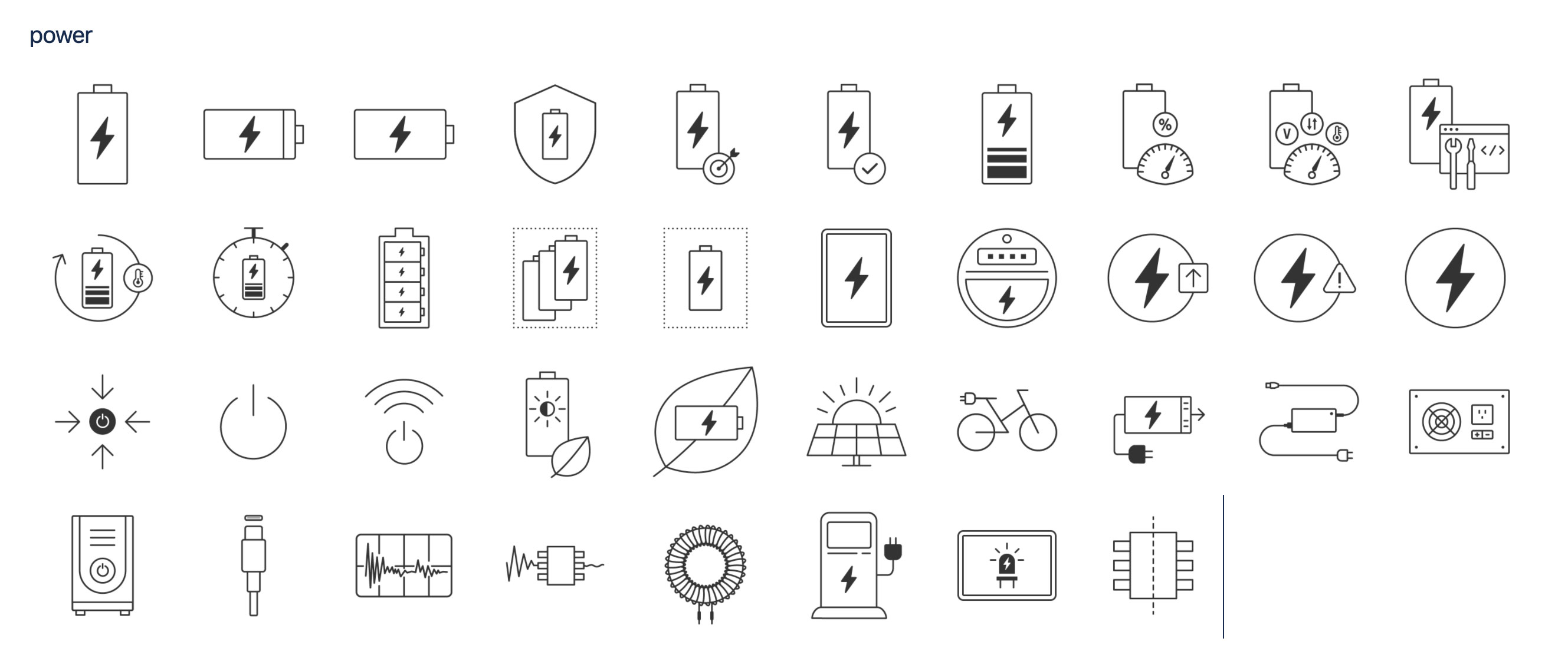 In addition to the education icon series, I contributed to a broader power icon system: the goal here is to create a unified visual language for various power-related categories across TI’s offerings.