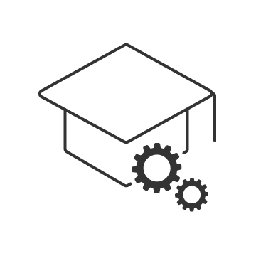 Gears leading to graduation cap.
