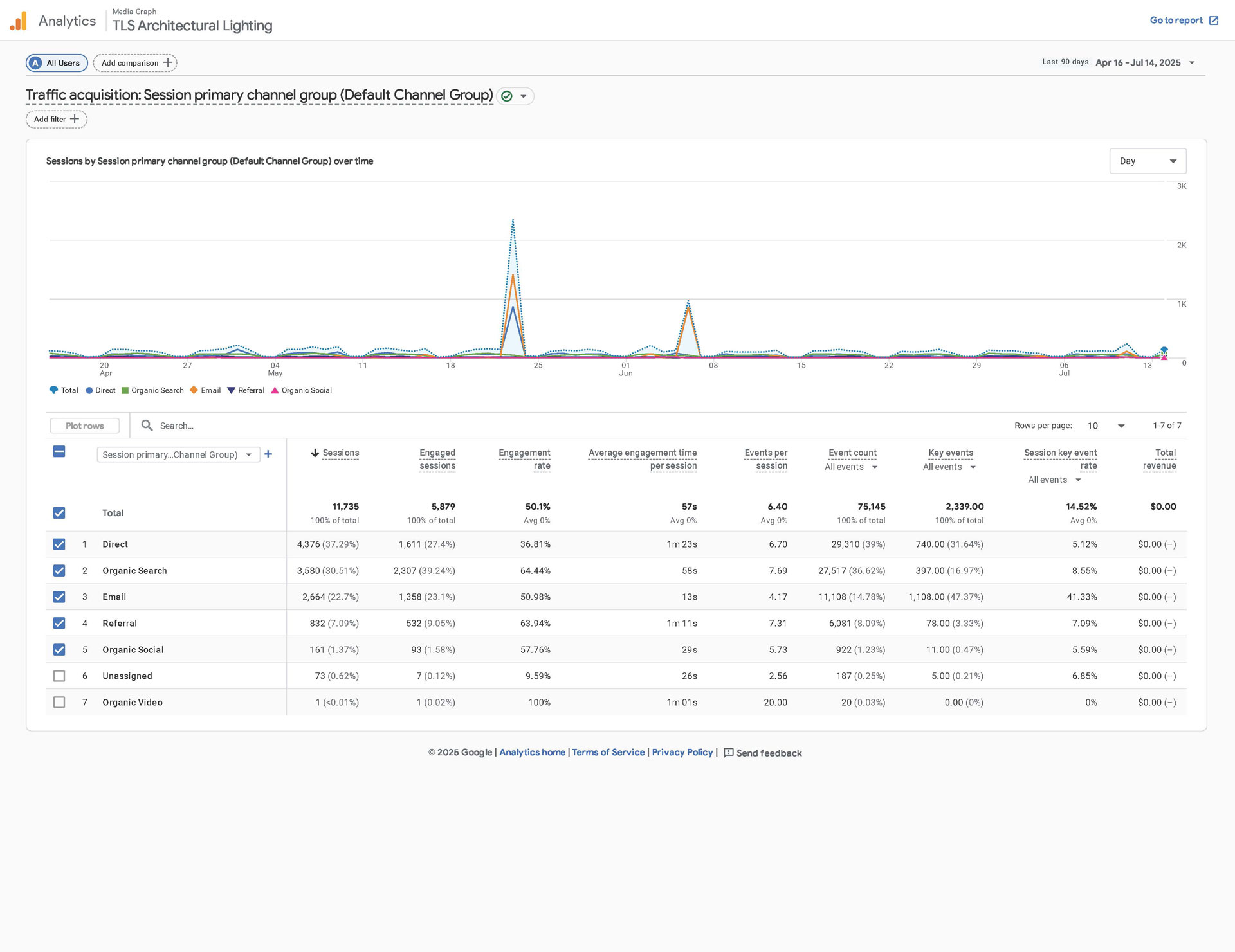 According to Google Analytics (Apr 16 – Jul 14, 2025), the redesigned TLS website recorded 26,000 total views and 75,000 tracked events, with an average engagement time of 1 minute and 18 seconds per user. Pages like the Carra product detail and LumiCloud™ Bespoke saw the highest traffic, reflecting interest in clearly structured product collections. These analytics confirm that the redesigned layout, especially the navigation improvements, effectively supported user needs and retained attention across sessions.